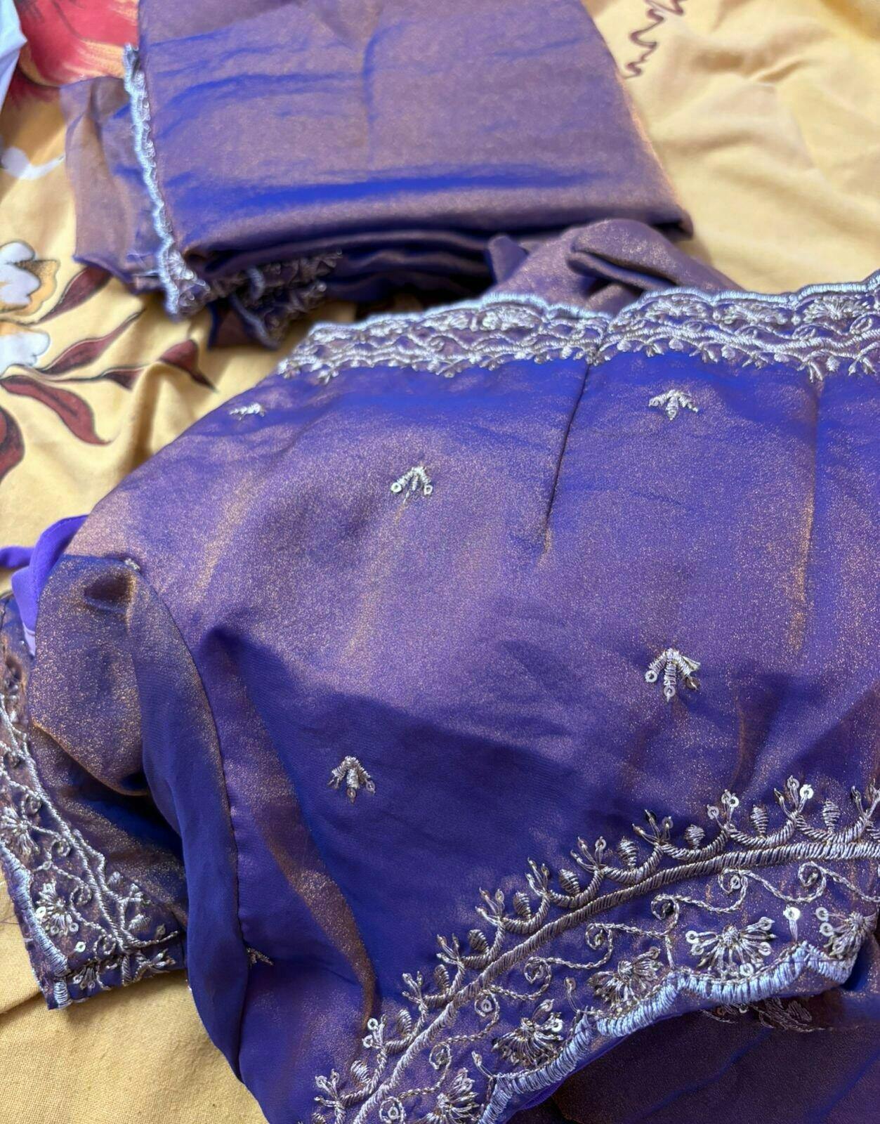 | Blouse | Primary Tissue Silk | Embroidery Sequence Work, Back Hook Lock | (Stitched) Free Size (M up to XXL Margin) | |