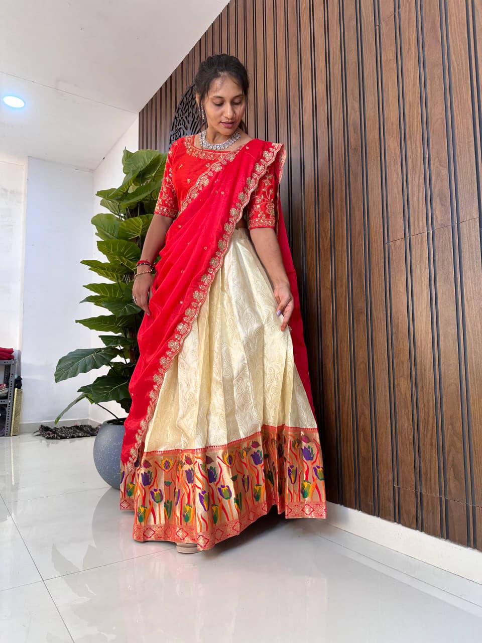 Lehenga : full stitched pure silk fabric with flair 3.5 mtr and lehenga zari paithani border same as original pic
