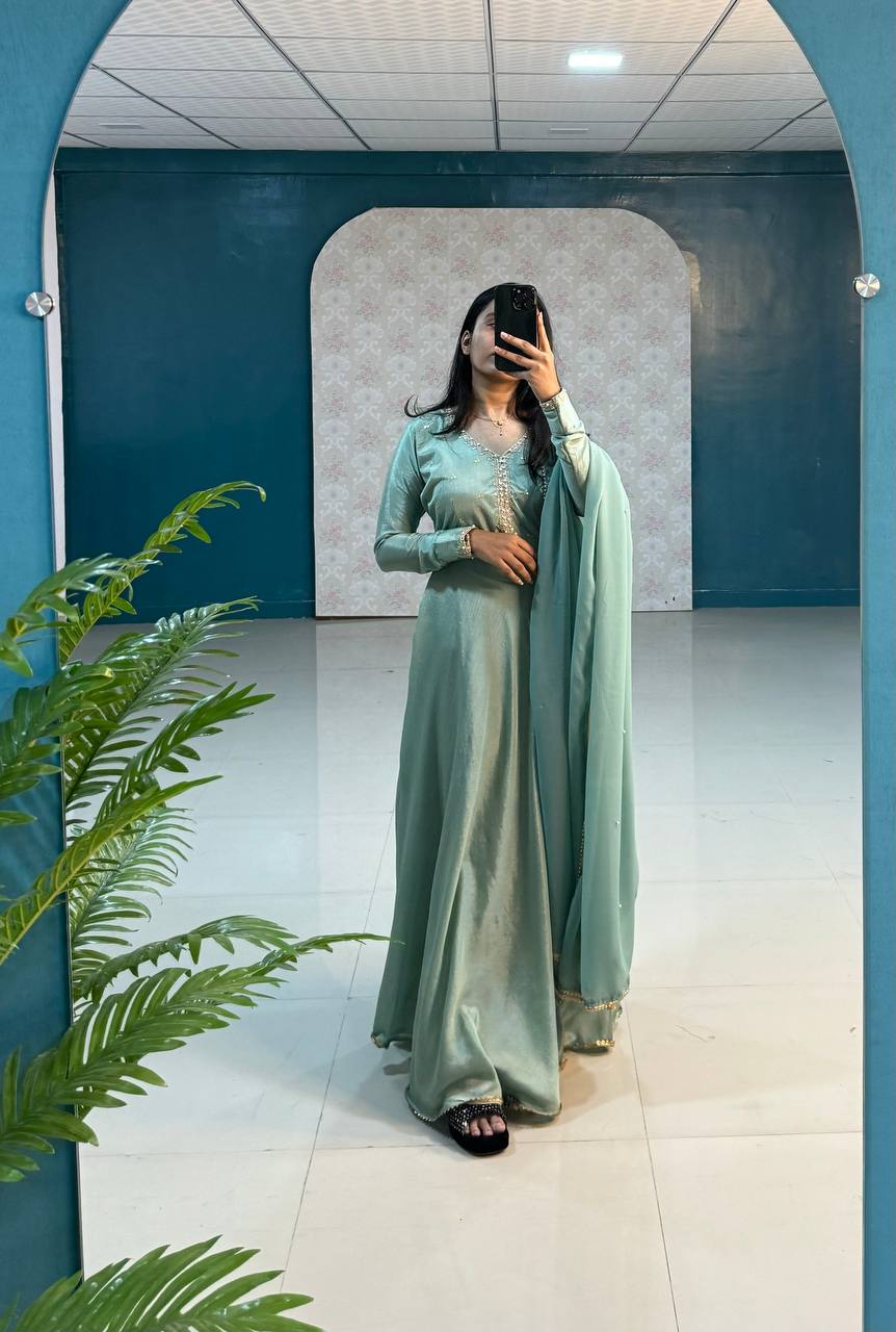 π#ANARKALI FABRICS : HEAVY CHINON Β Silk Β WITH BEAUTIFUL WORK WITH π