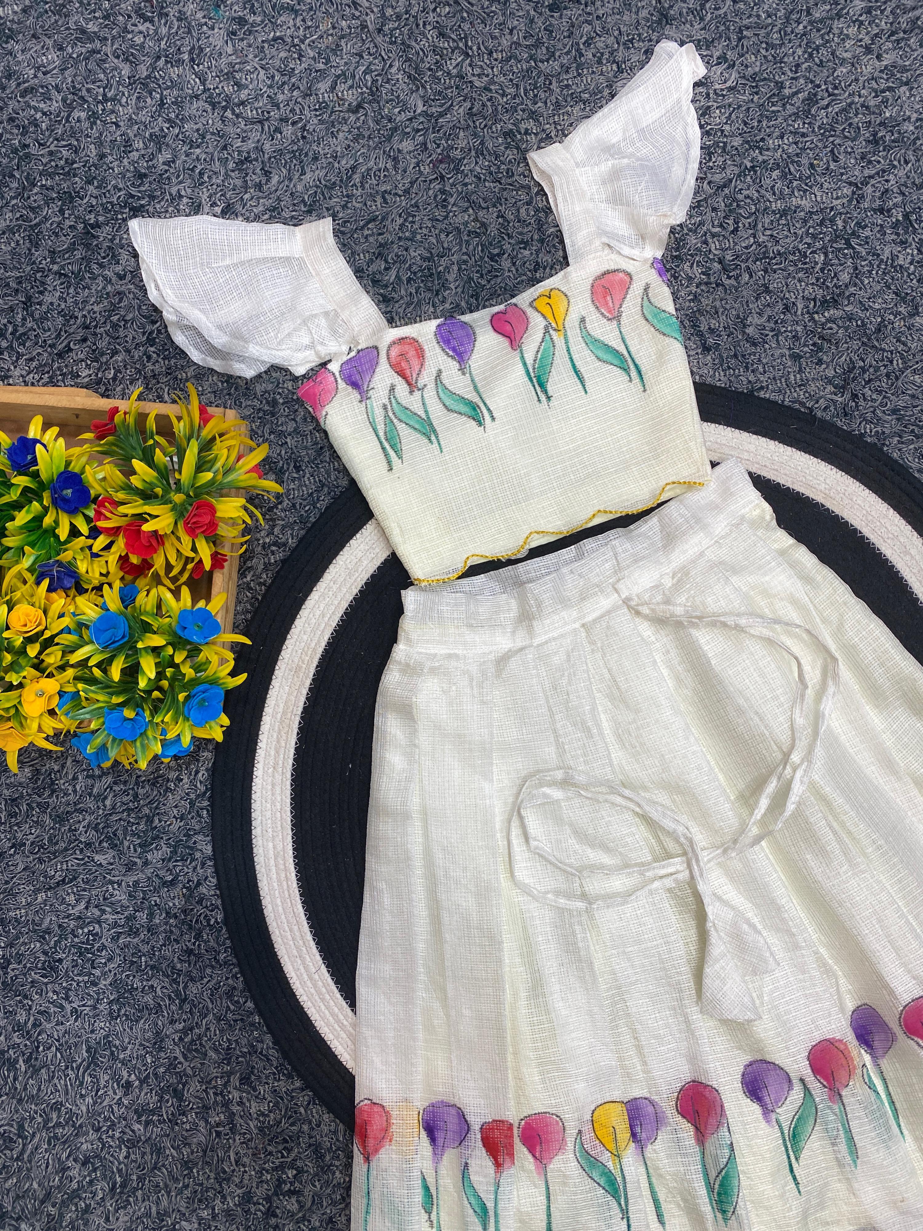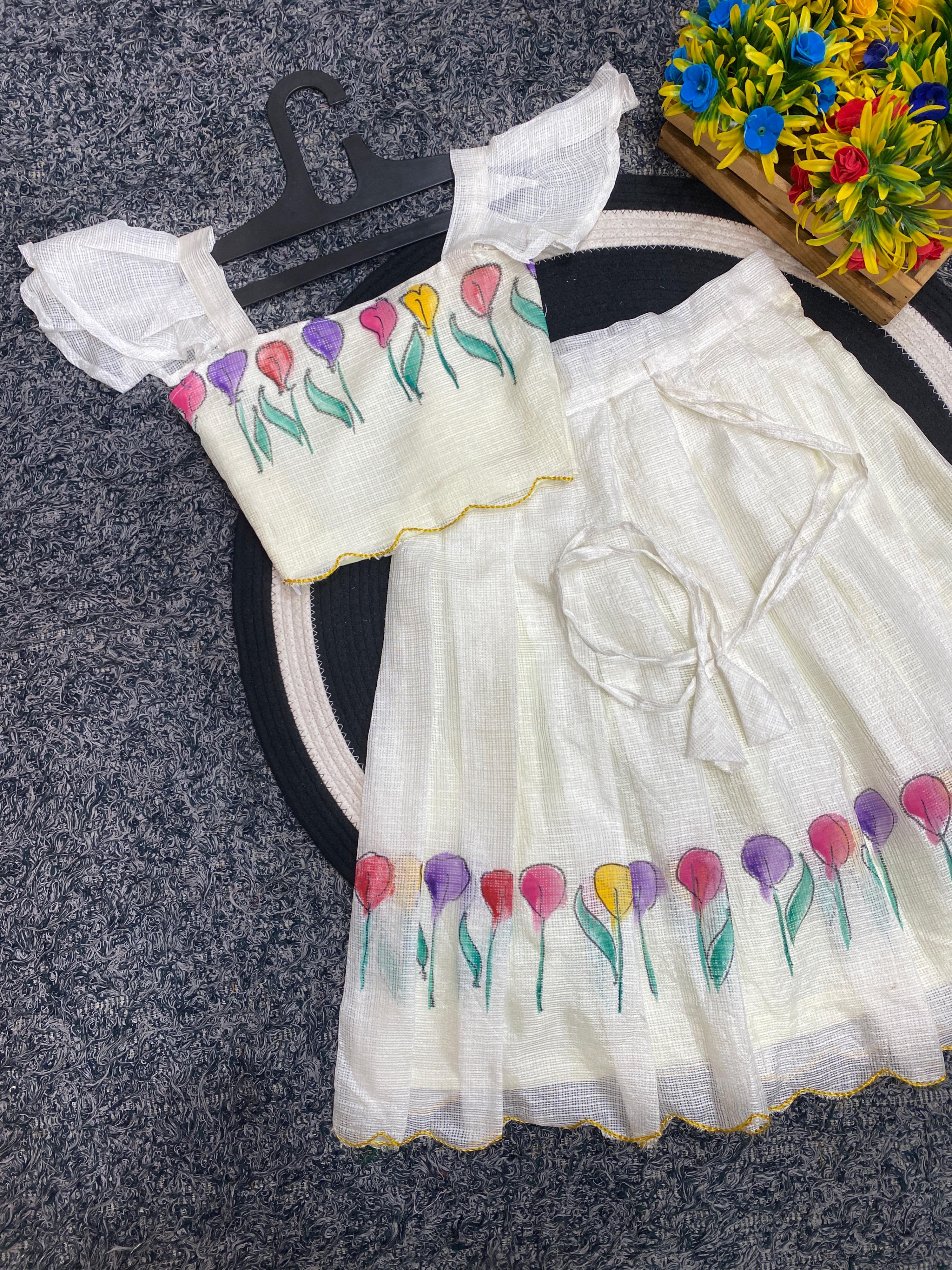 Lehenga :heavy kota cotton fabric with handpaint work on the border