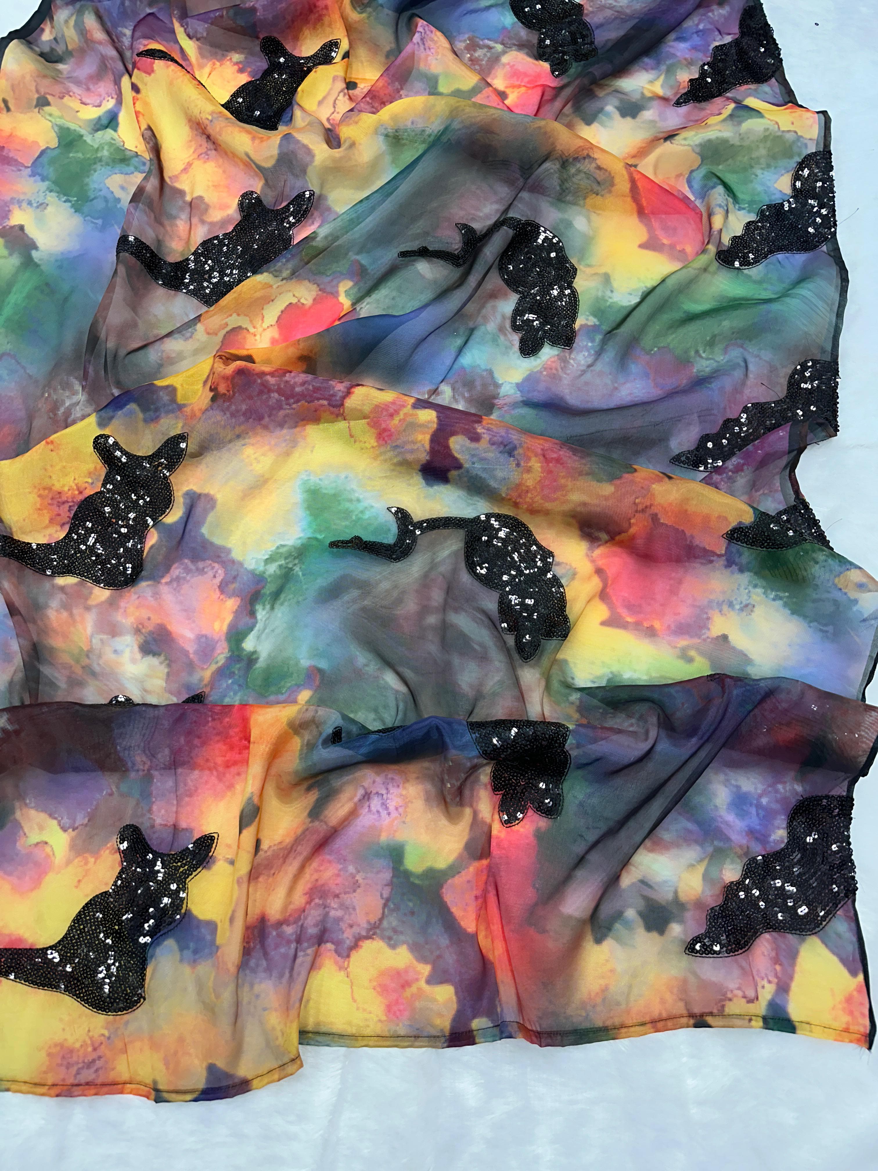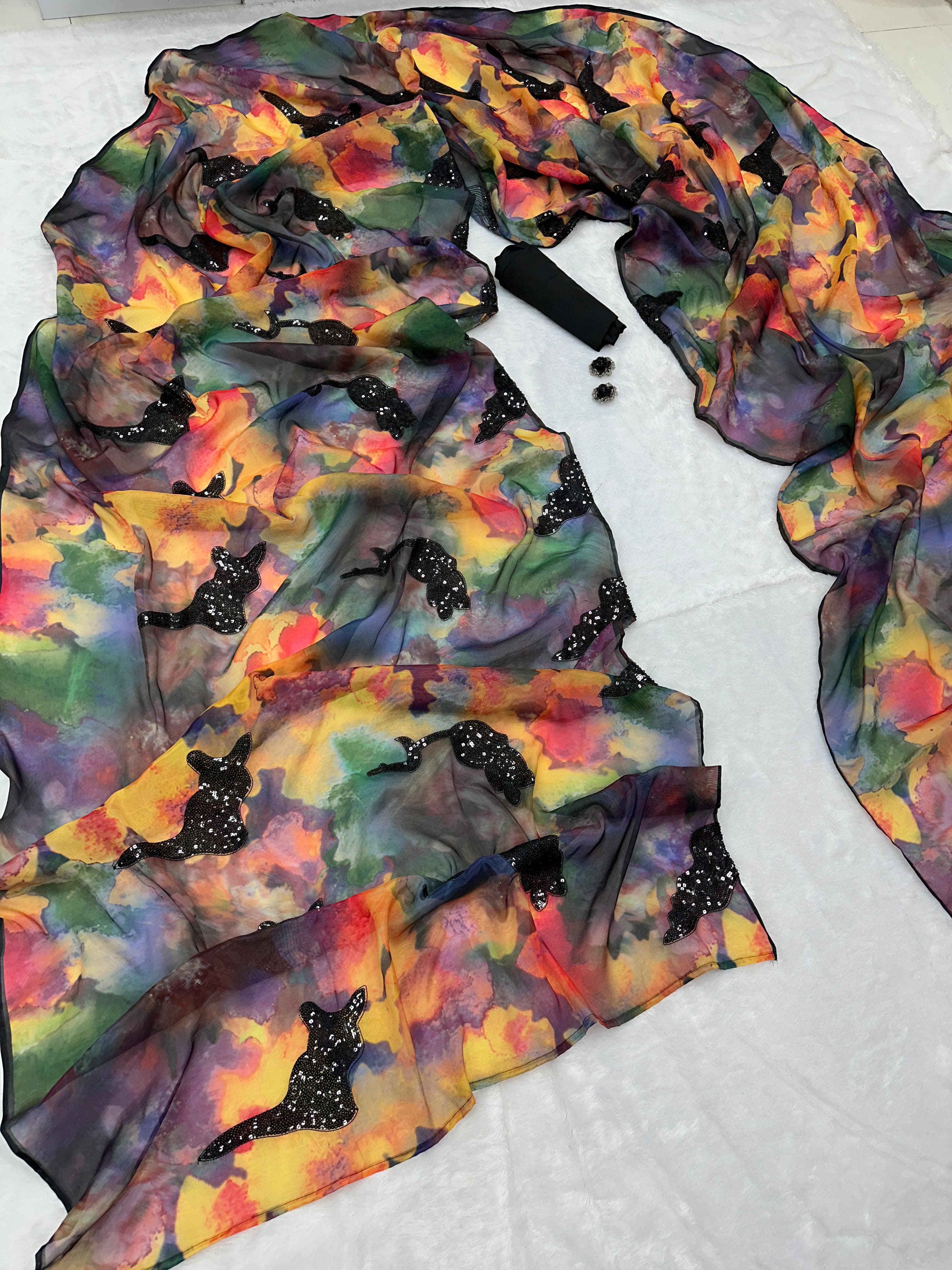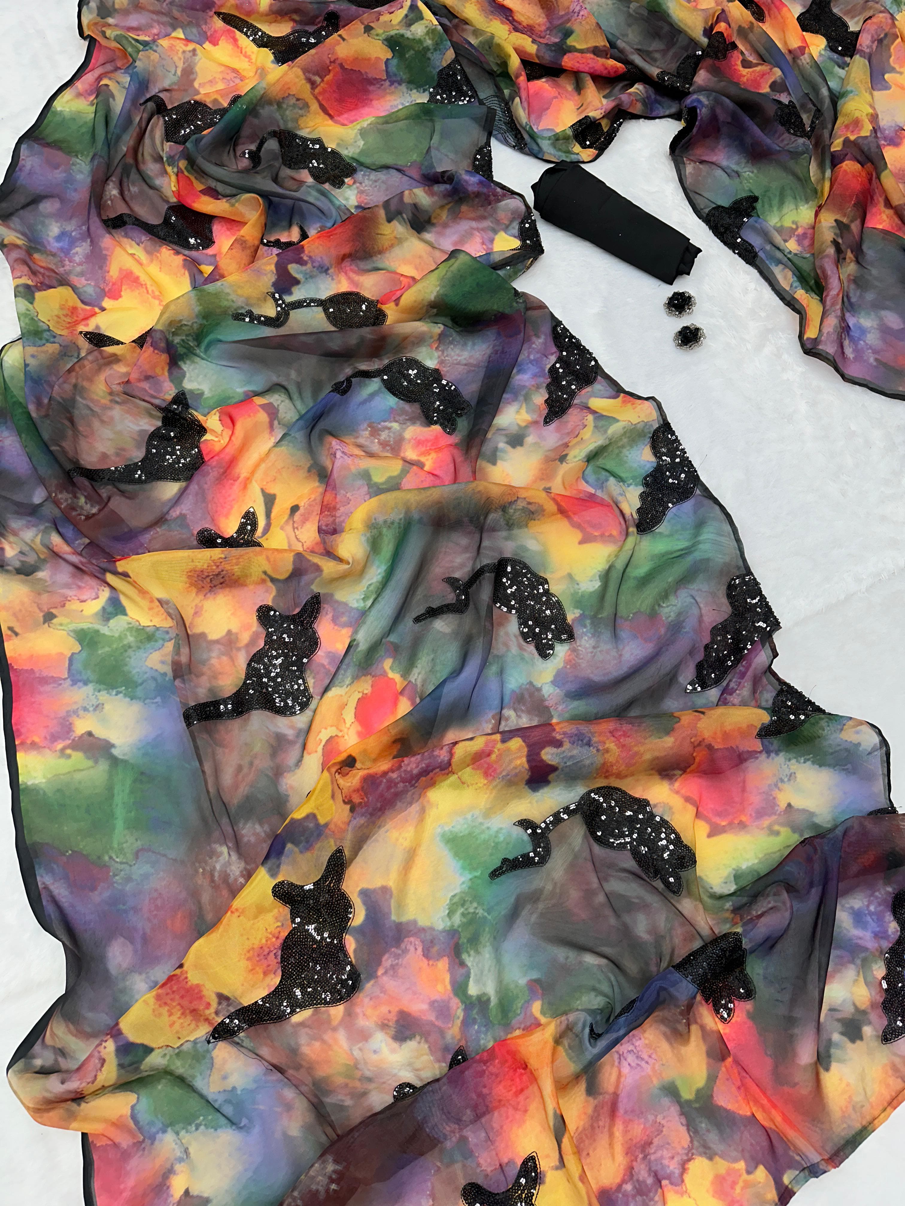 | Saree Work | Digital Printed with Embroidery Sequins Work |