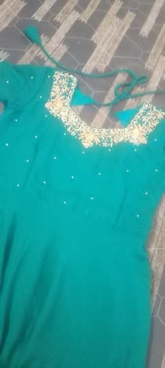 Experience elegance with our exclusive designer Anarkali set, featuring intricate Maggam hand-work and a premium Chinnon Silk dupatta.