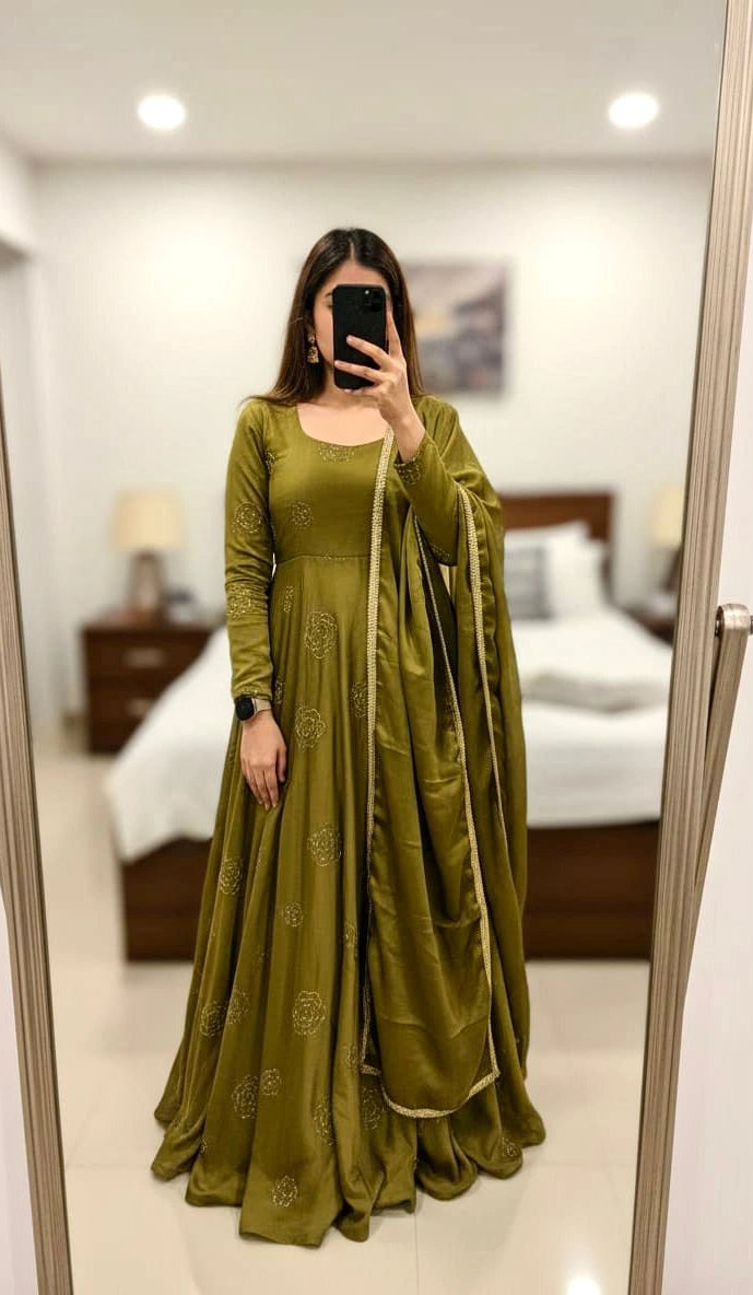 | Dupatta Fabric | Matching Rangoli Silk with 4-Side Lace Border |