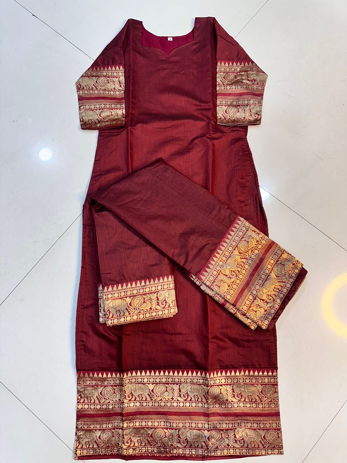 Classic Maroon Cotton Jacquard Kurta with Dupatta Set – Elegant Traditional Wear with beautiful elephant design.