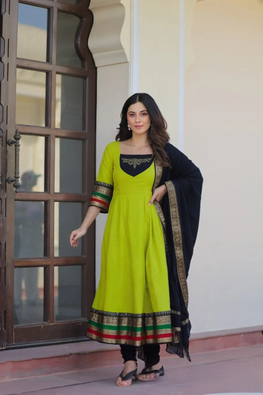 A sophisticated blend of Jacquard Silk and intricate embroidery for a timeless ethnic look.