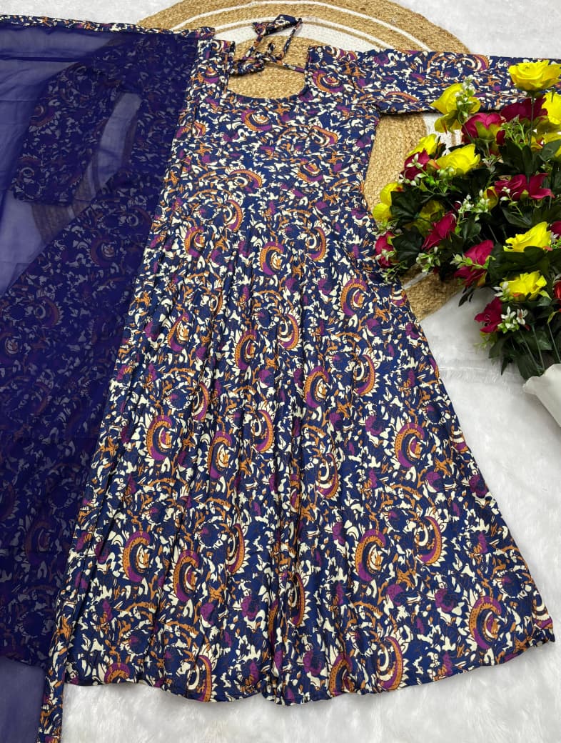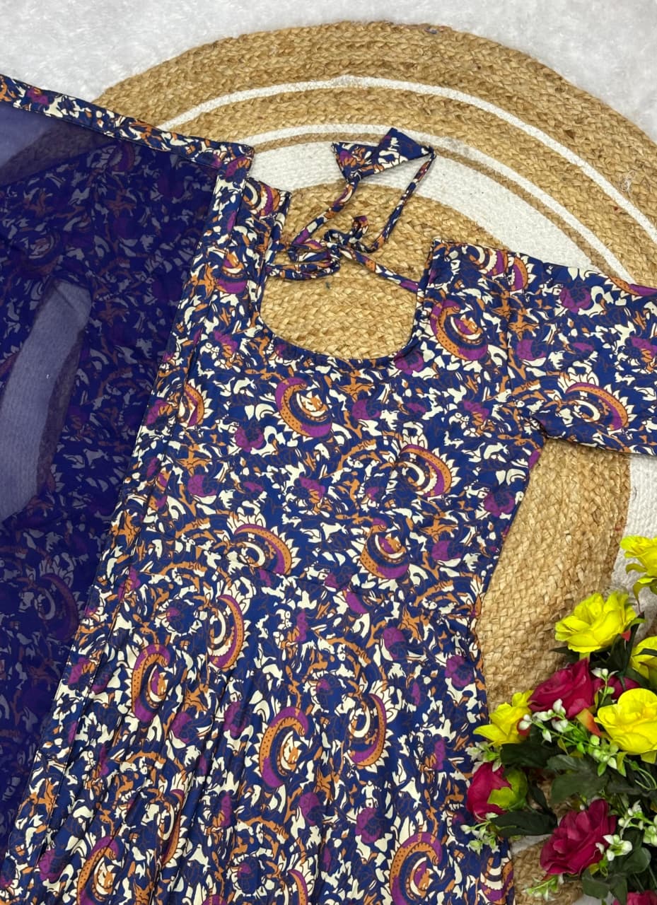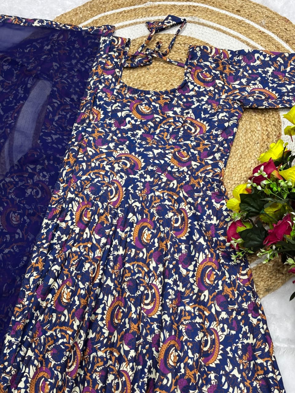 Elevate your ethnic wardrobe with a graceful Anarkali crafted from pure cotton hand-block printed Kalamkari fabric. This full-length silhouette blends traditional artistry with modern elegance. Paired with a luxurious kalamkari lace border georgette dupatta, it's perfect for festive occasions, , or cultural celebrations.