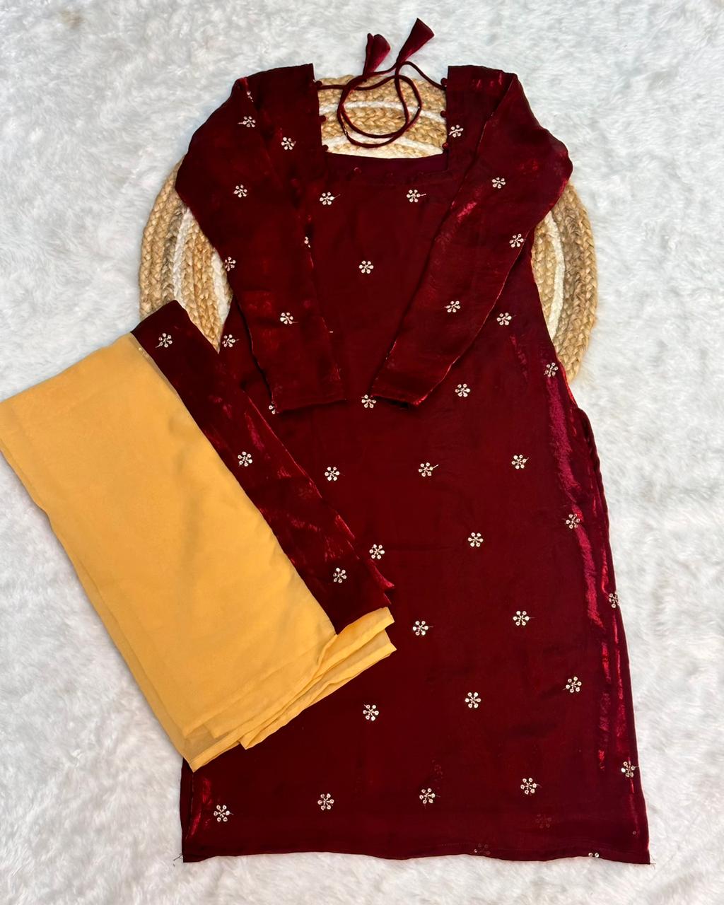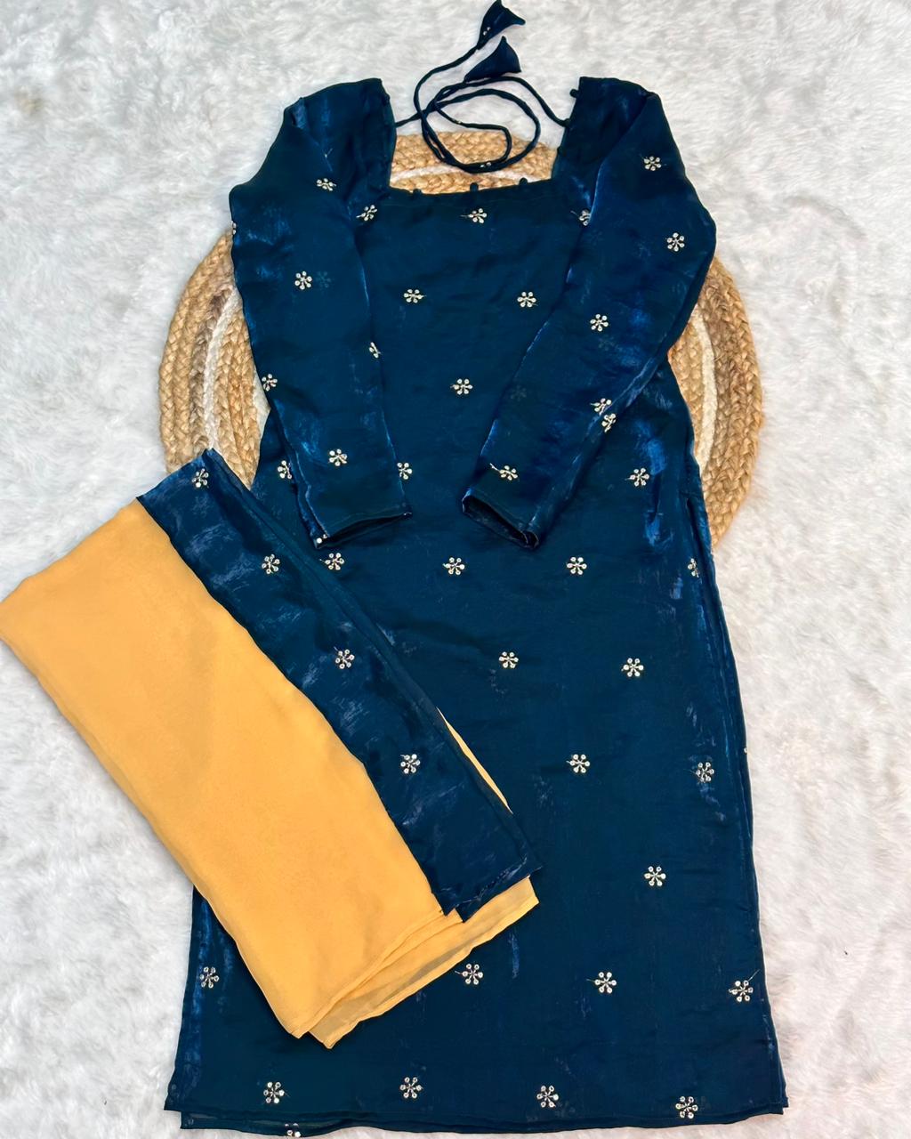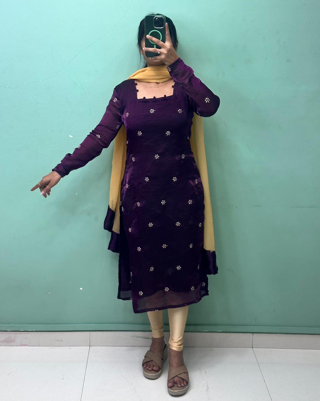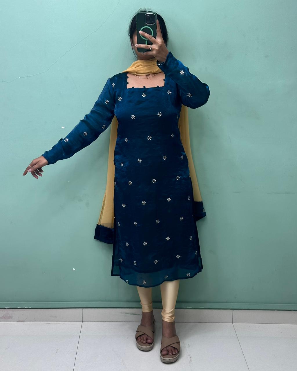 | Kurti Fabric | Premium Fandy Silk (Rich texture with subtle glow) |