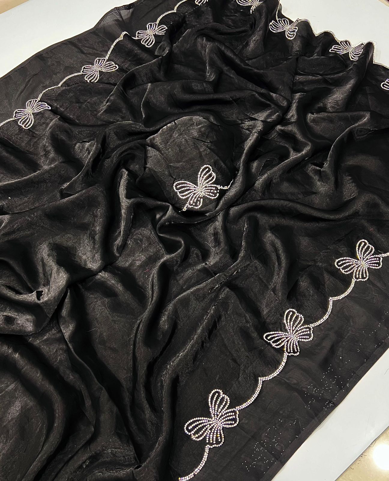 | Border Design | Siroski (Hot-fix Crystal) Work in Butterfly Motifs |