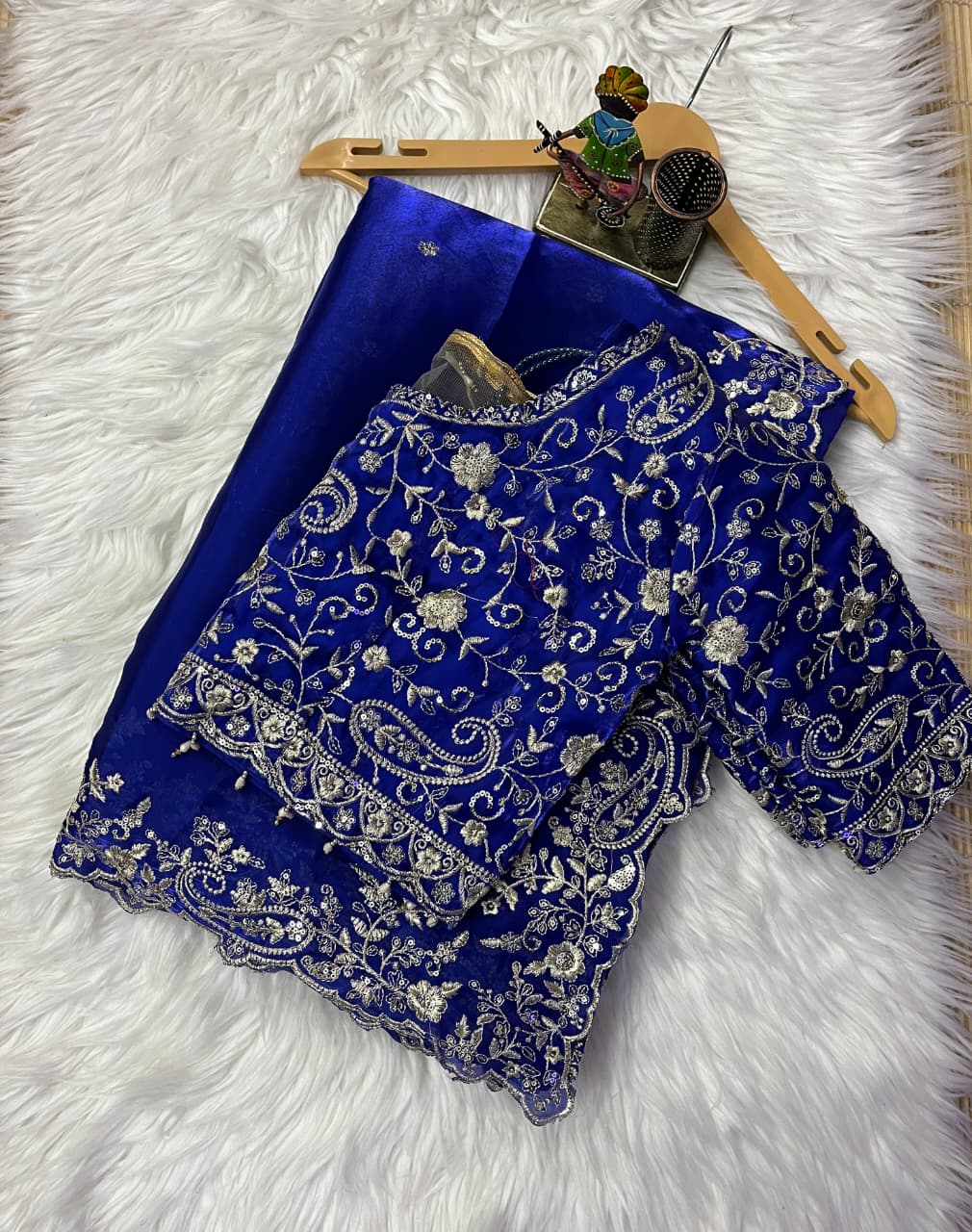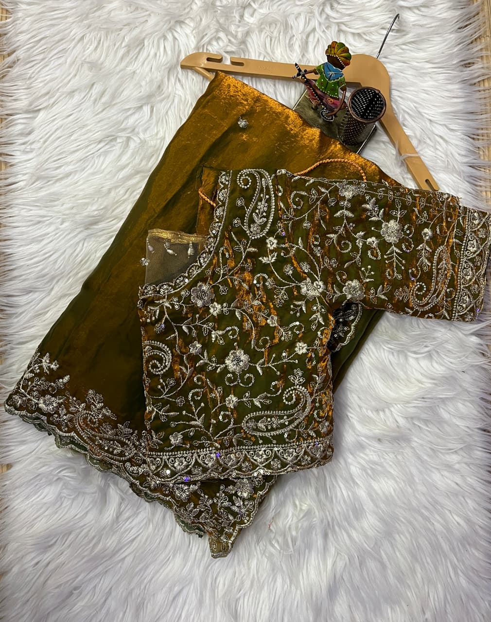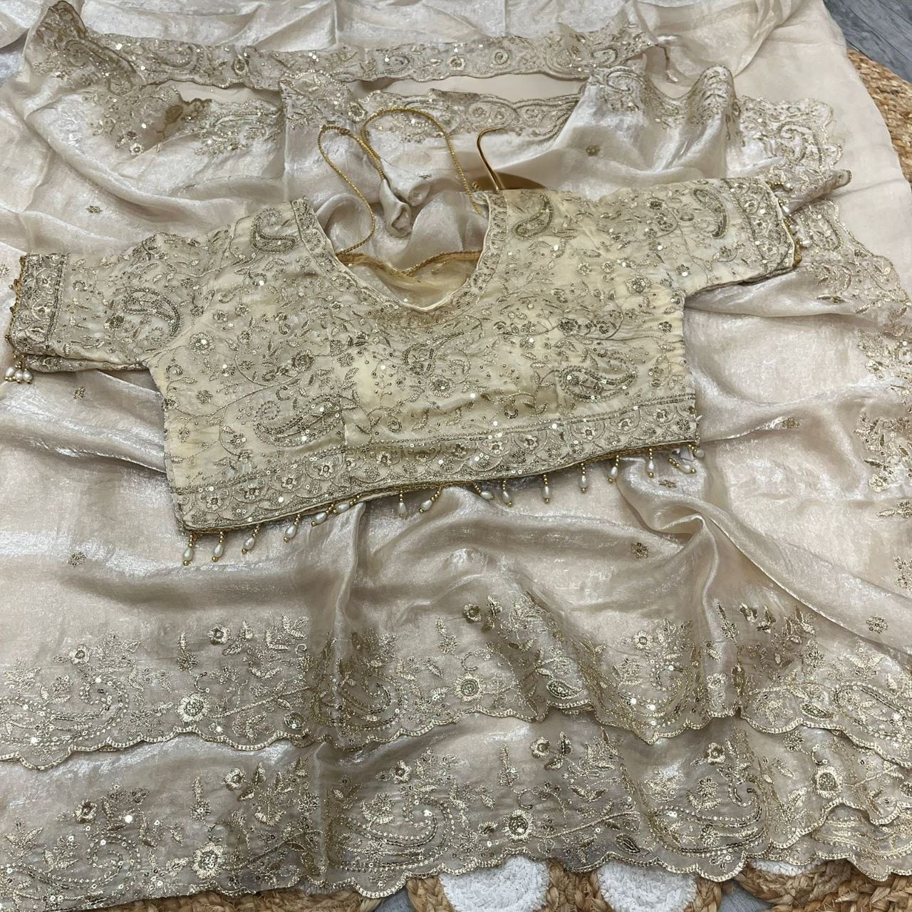 | Blouse Work | Full Zari Embroidery with Latkan |