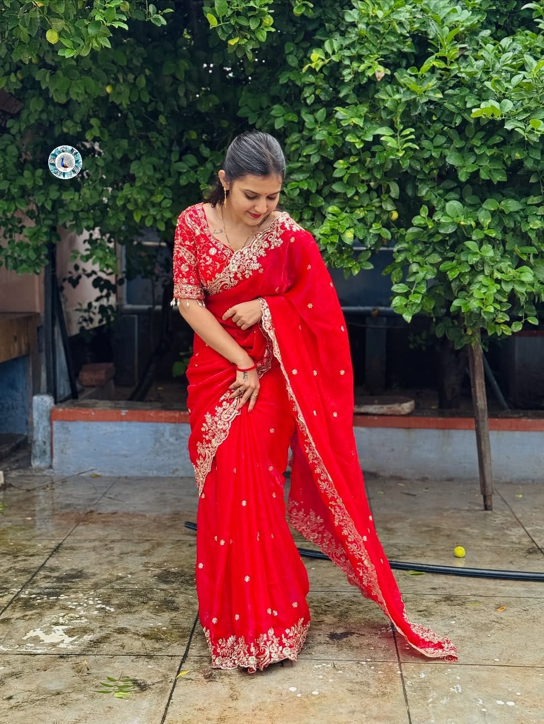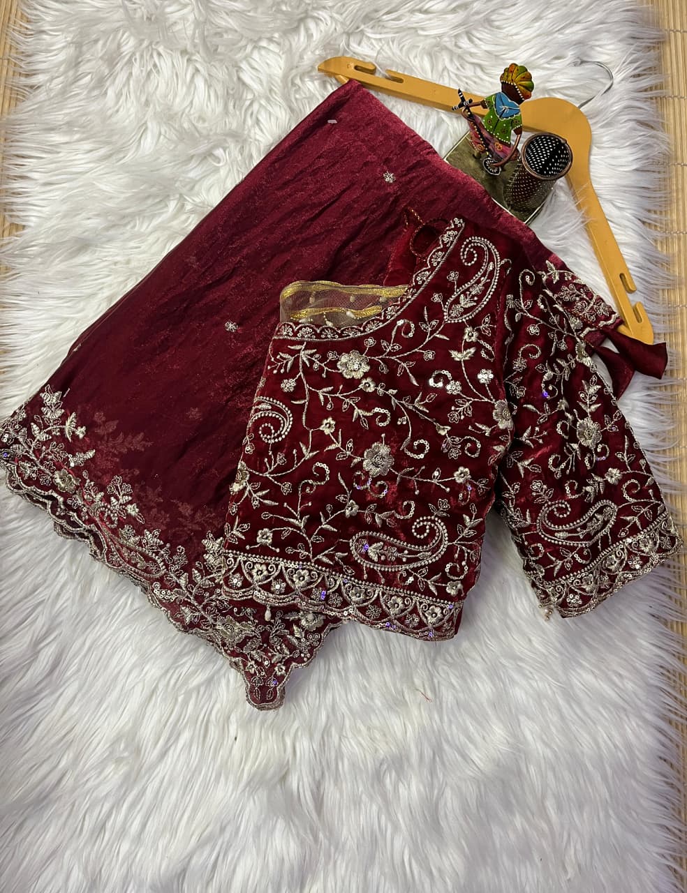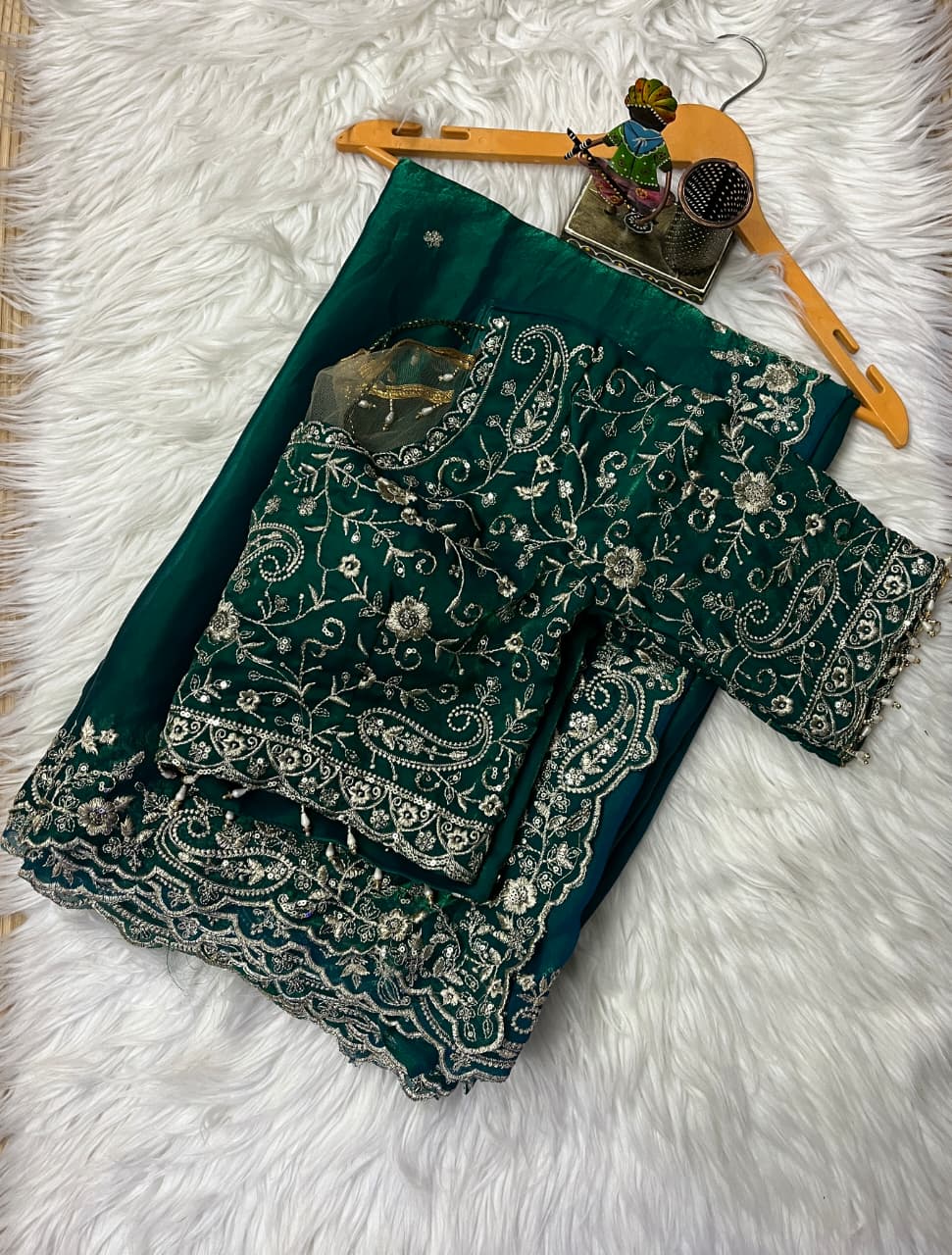 | Blouse Work | Full Zari Embroidery with Latkan |