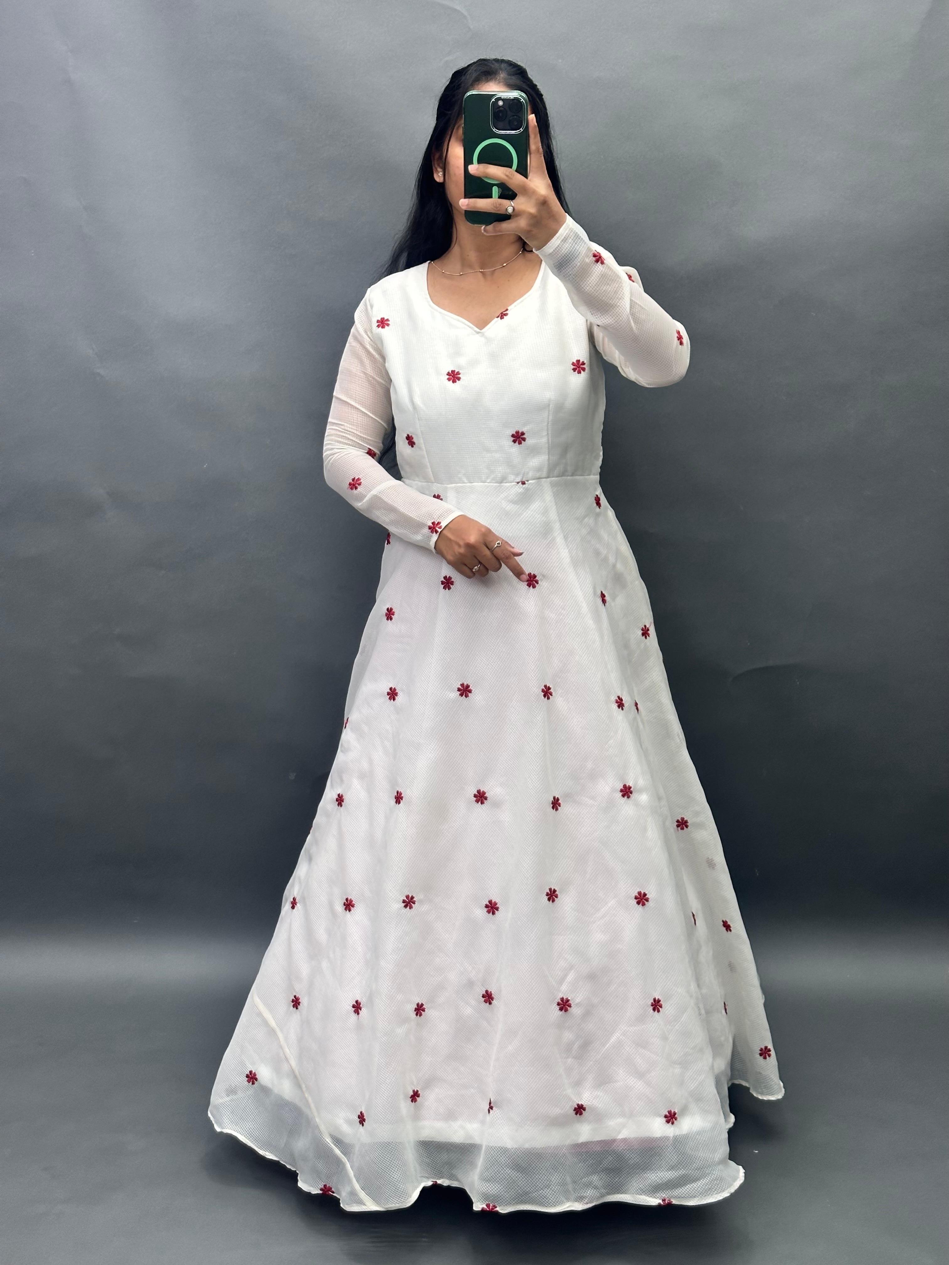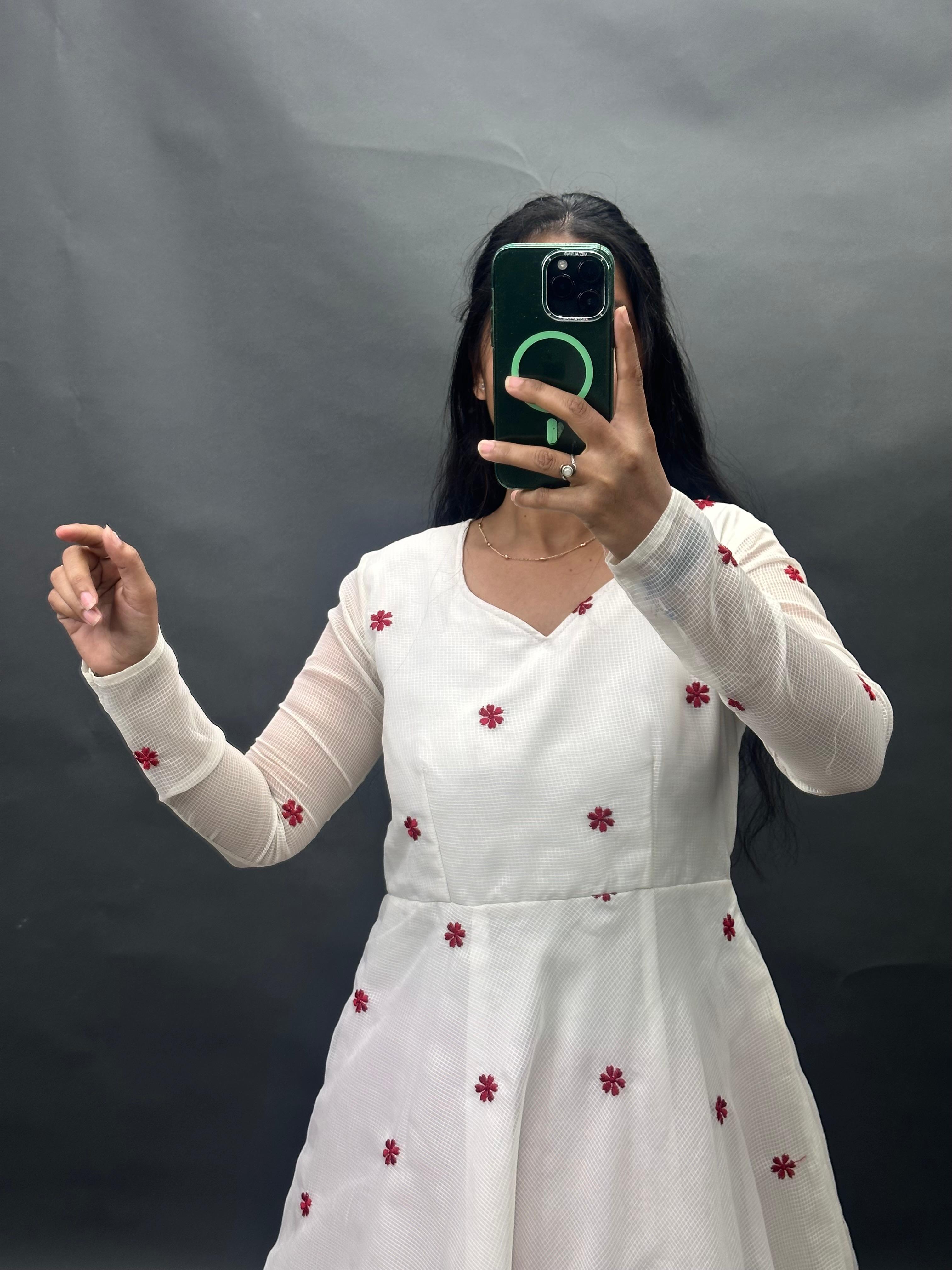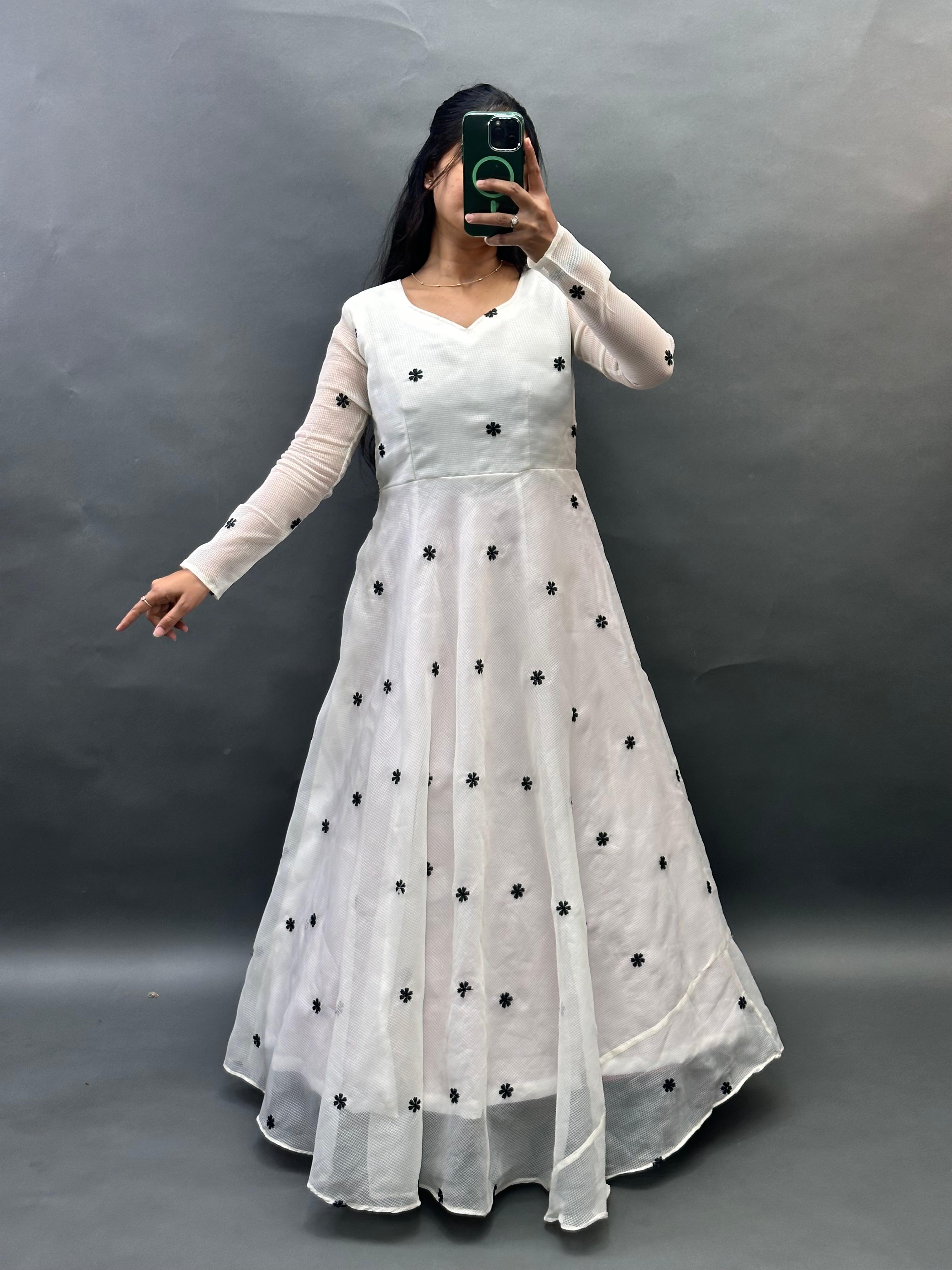 Silhouette Floor-length Anarkali with a voluminous flare and full sleeves.