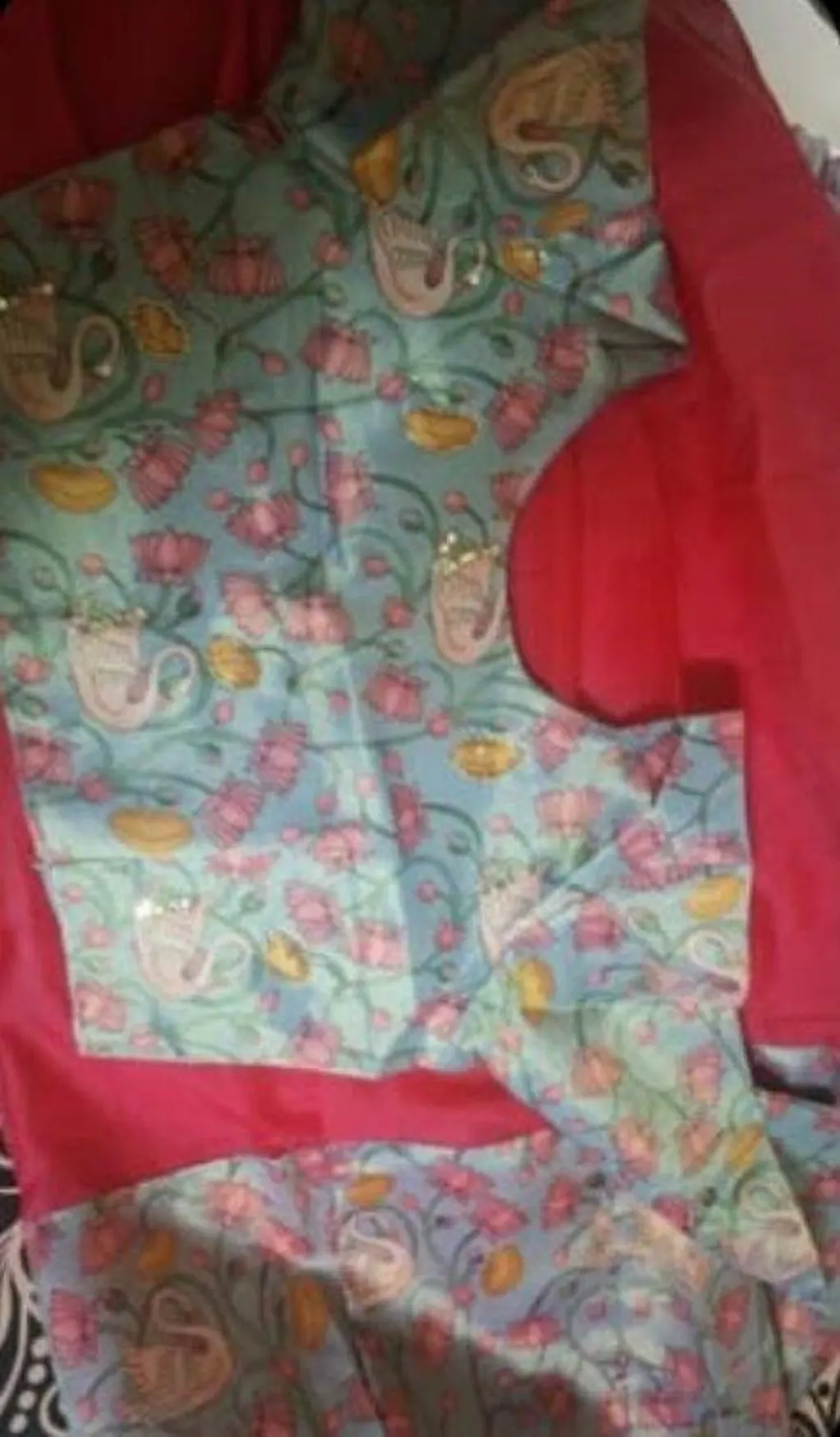 Blouse Fabric Printed South Silk with Intricate Handwork