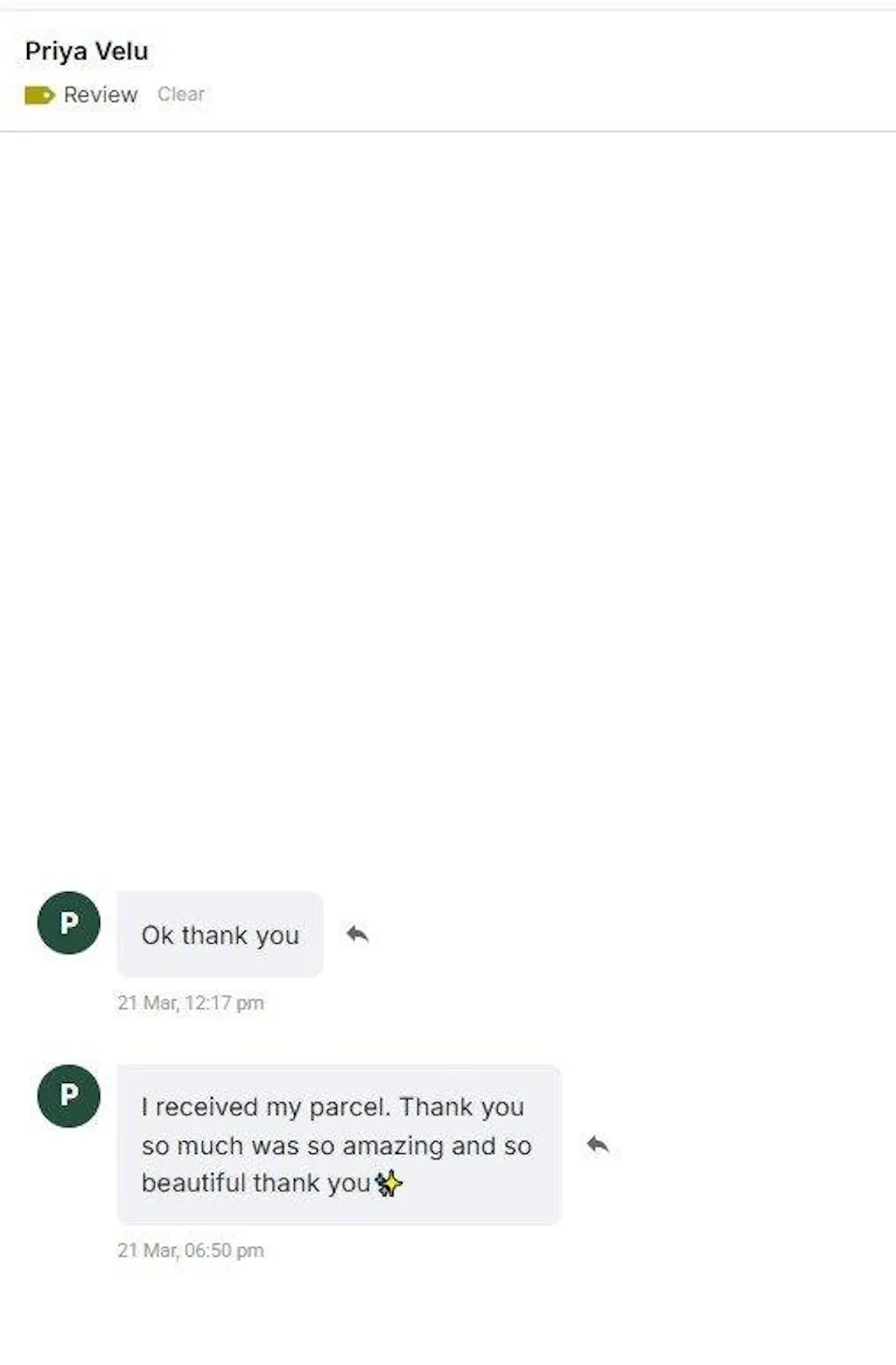 I received my parcel. Thank you so much was so amazing and so beautiful thank you✨