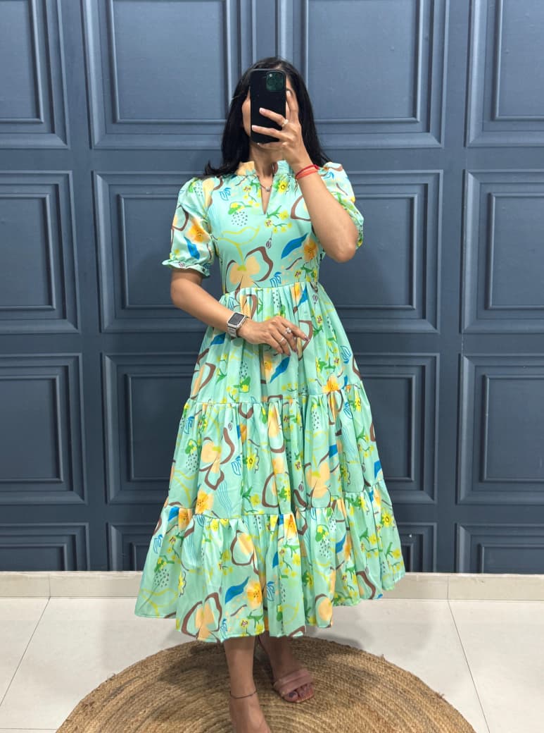 This Dress made from muslin cotton fabric with Print Work and stylish 3 Layer Pattern